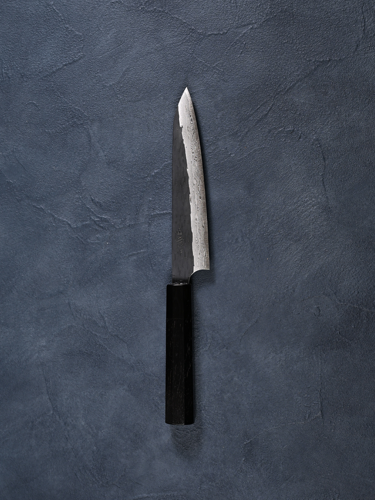 Nigara Petty Knife 150mm VGXEOS Black Finish with Buffalo Ebony Octagonal Handle