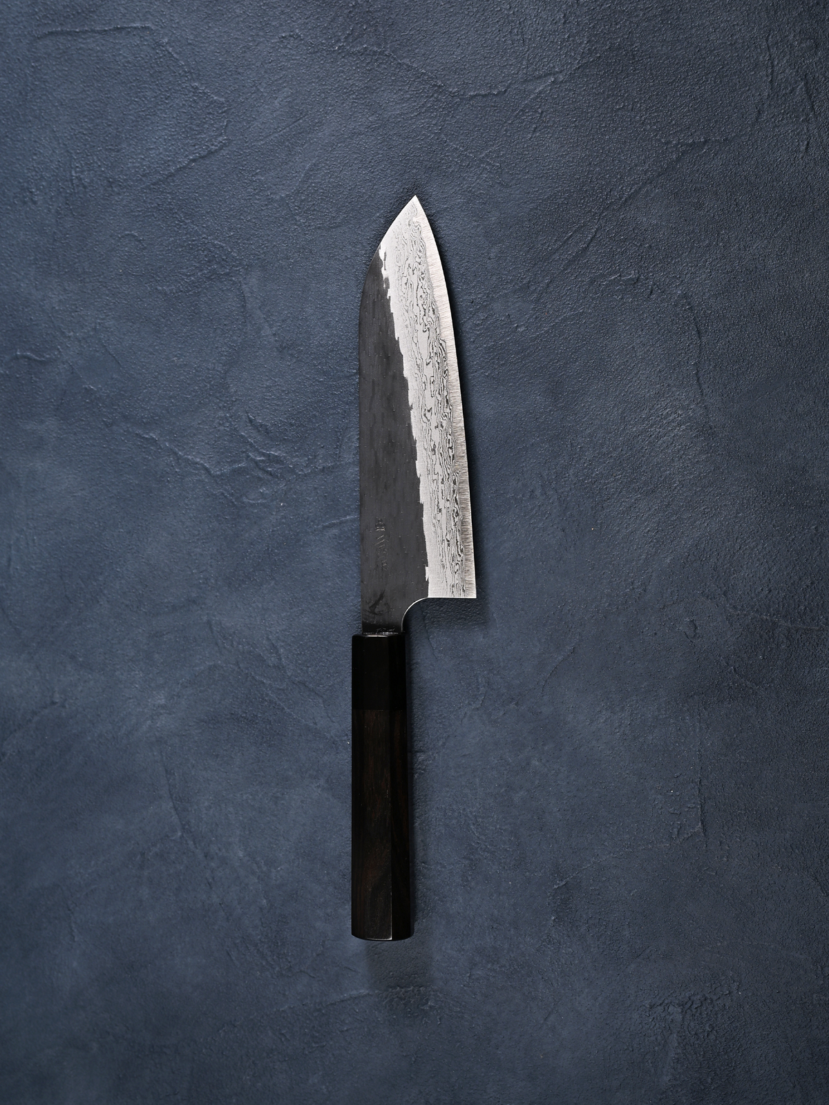 Nigara Santoku Knife, VGXEOS, Black Finish, Buffalo Ebony, Octagonal Handle