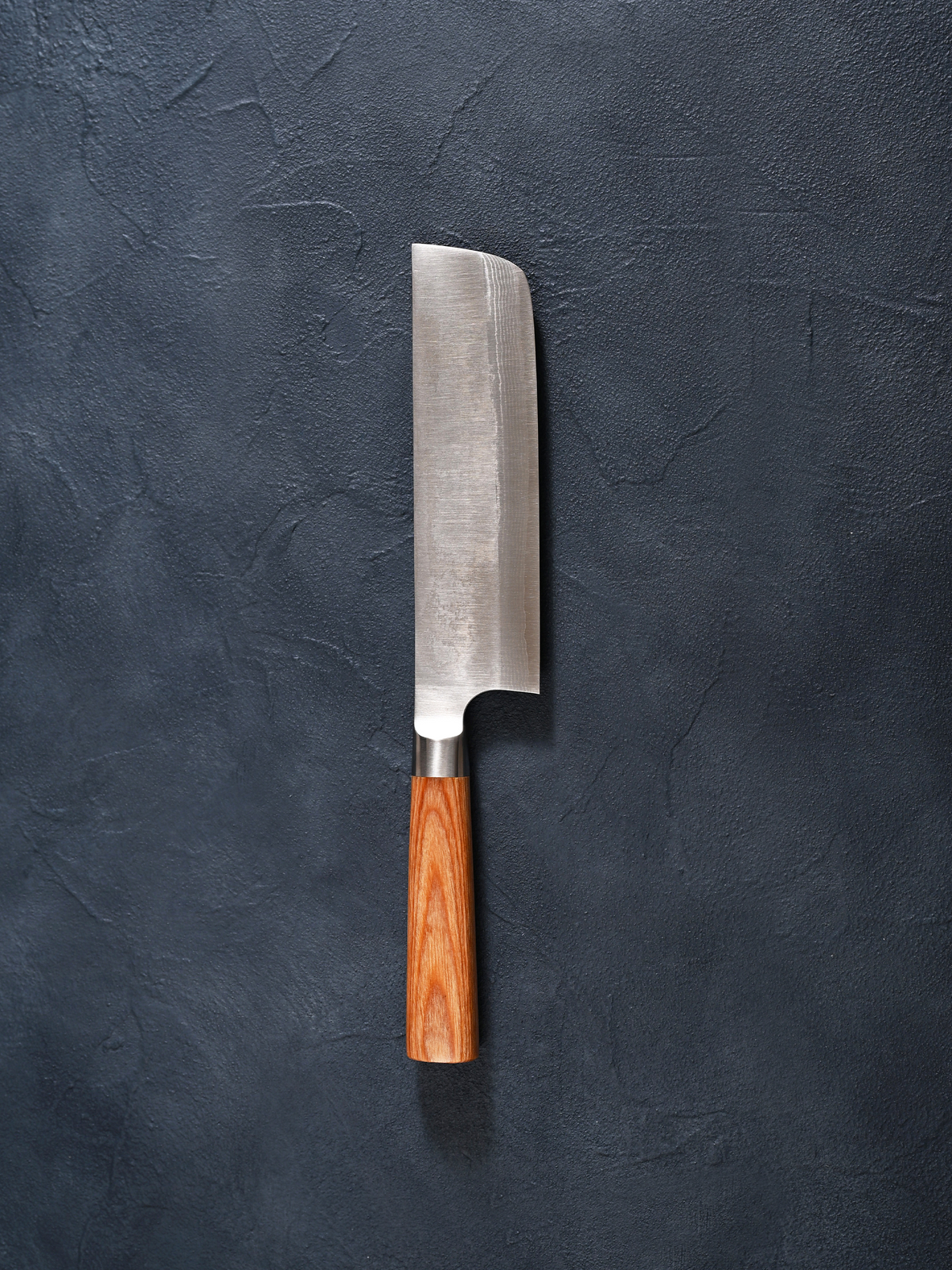 Katsuyasu Kamo Nakiri Knife, VG10 Steel, Plywood Handle