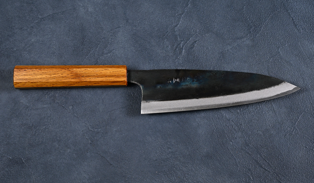 Tosa Tsukasa Gyuto Knife 180mm White Paper Steel Black Finish Oak Octagonal Handle