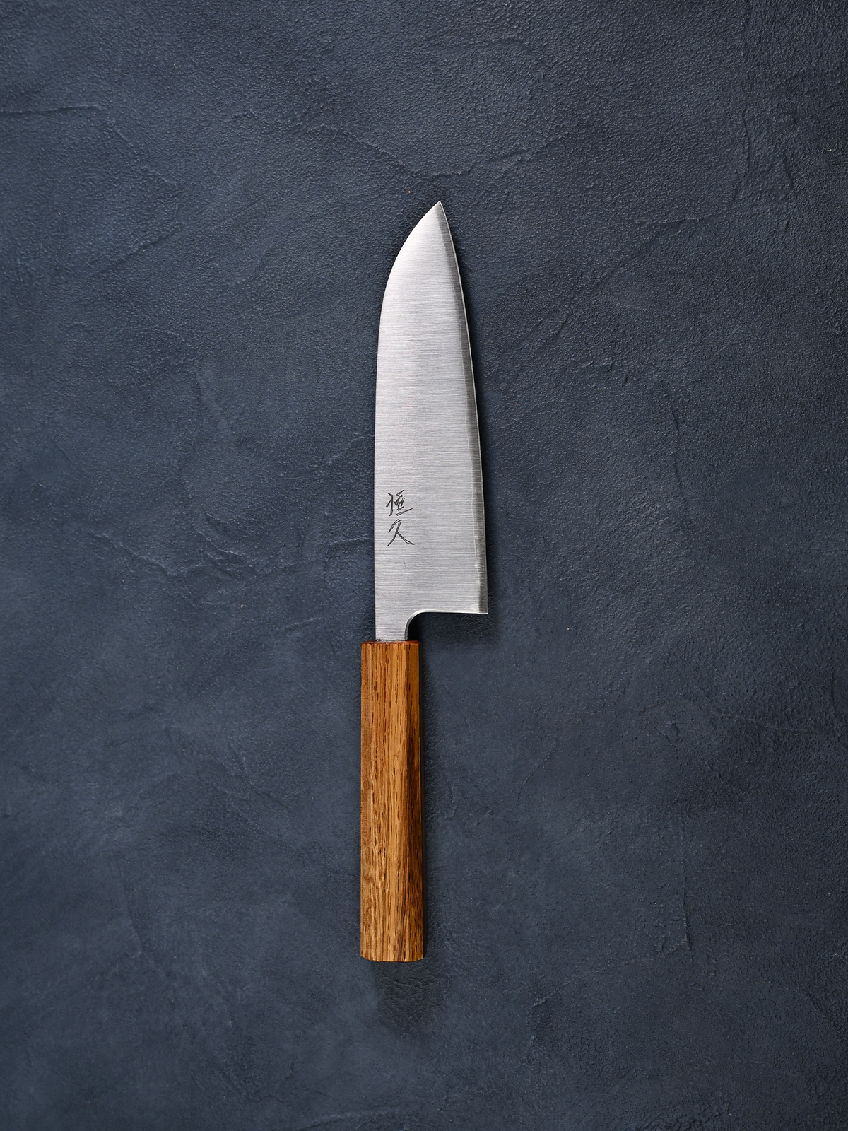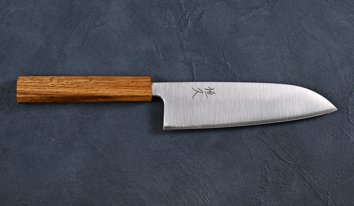 Tsunehisa Santoku Knife, Silver Paper No. 3 Steel, Polished, Oak Octagonal Handle