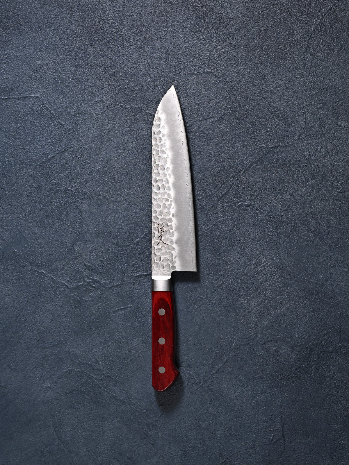 Tsunehisa Santoku Knife, 180mm, AUS8 Steel, Hammered, Red Western Handle