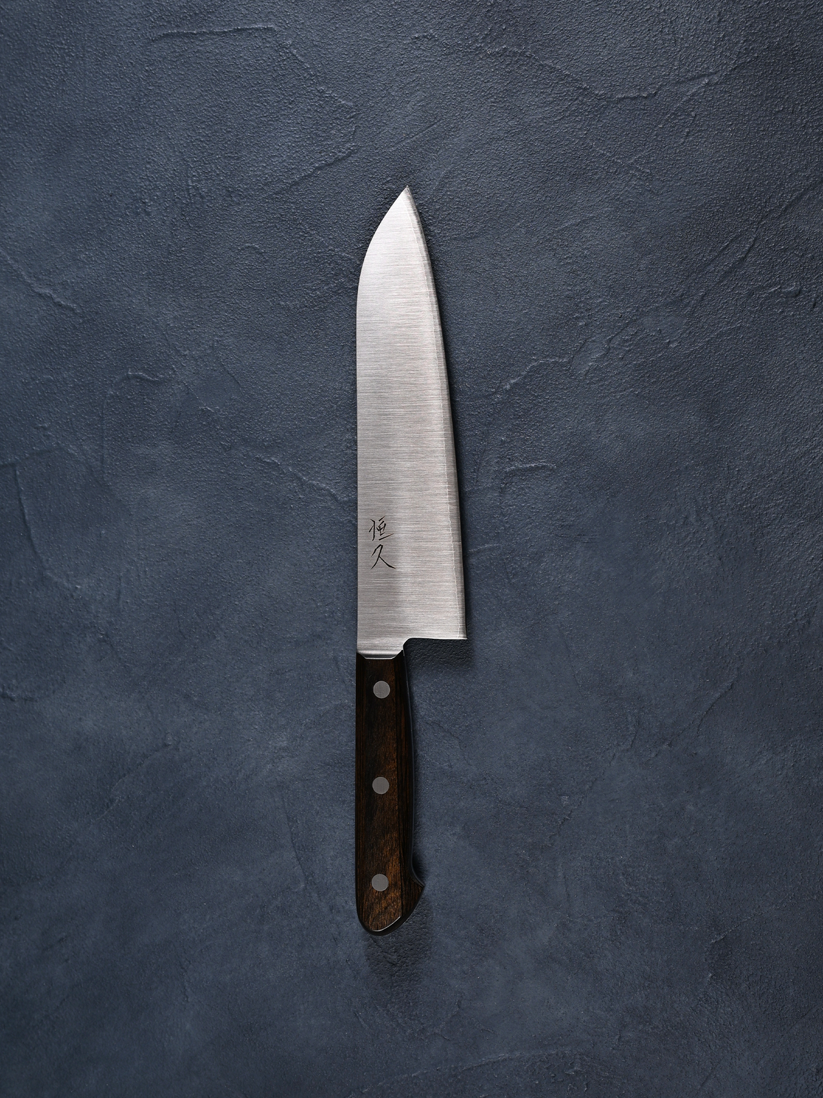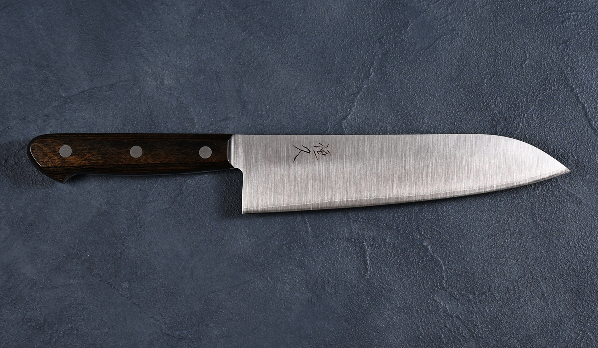 Tsunehisa Santoku Knife, 180mm, SLD Steel, Polished, Brown Handle