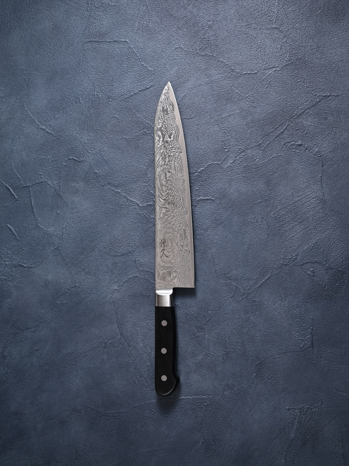 Tsunehisa Gyuto Knife 240mm AUS10 Steel Damascus Wave Black Western Handle