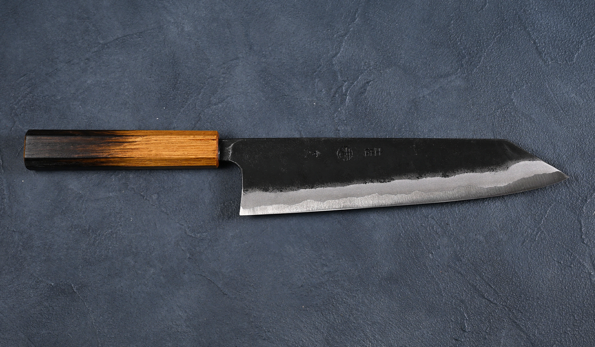 Kyohei Shindo, 210mm, Blue Steel No. 2, Black Finish, Oak-Glazed Lacquered Octagonal Handle