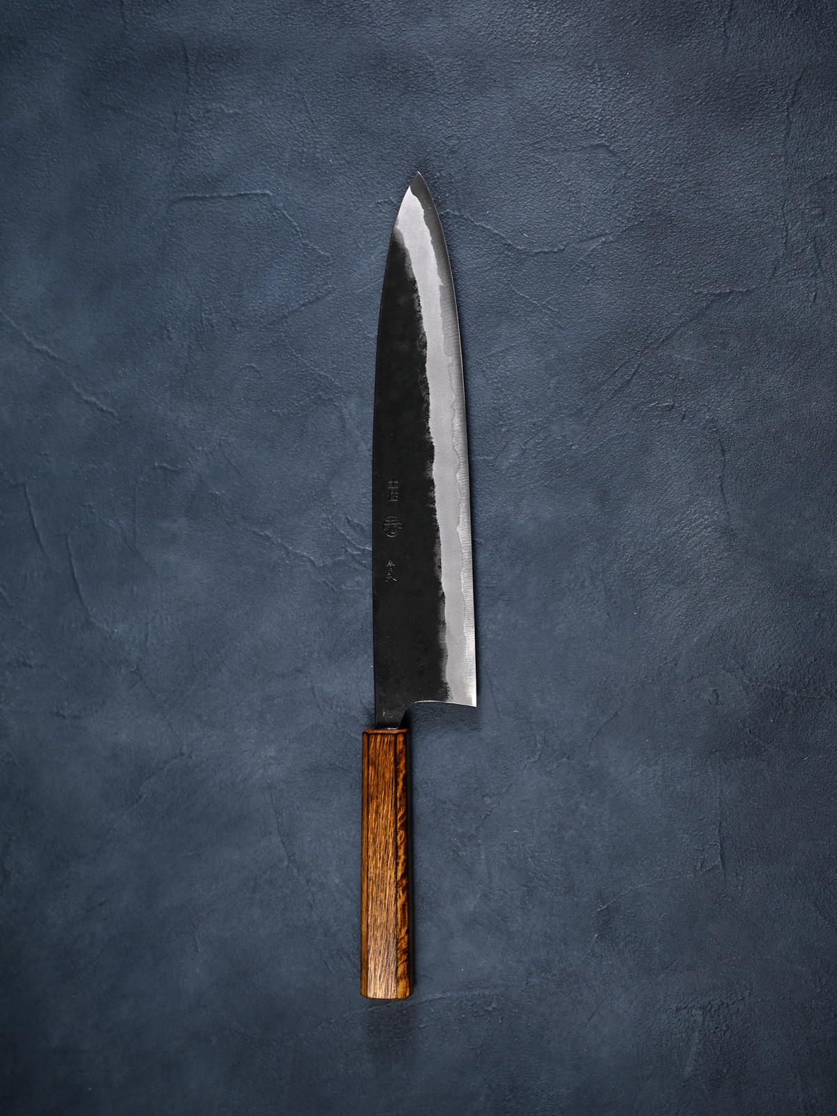 Kyohei Shindo Gyuto Knife, 270mm, Blue Steel No. 2, Black Forged, with Black Ash-Stained Octagonal Handle