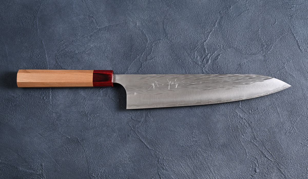 Yu Kurosaki Sasame Gyuto Knife, 240mm, SG2 Powdered High-Speed Steel, American Cherry Octagonal Handle
