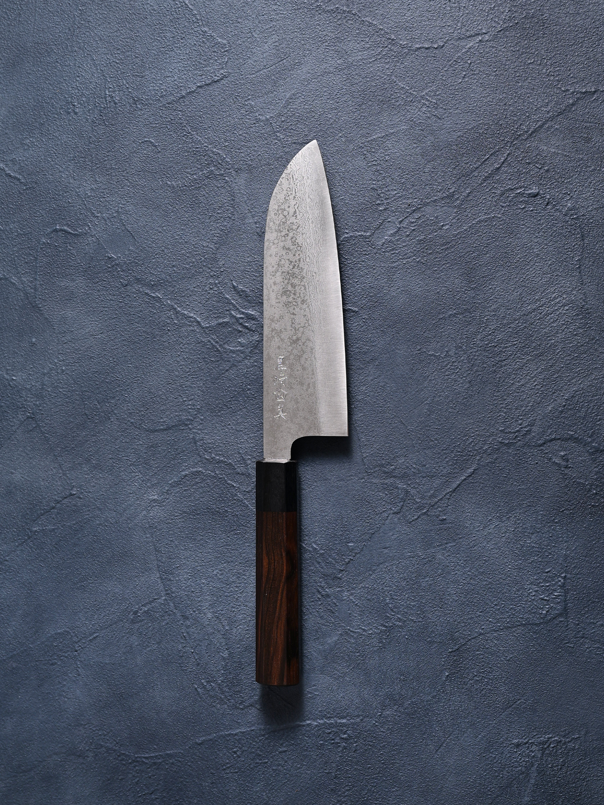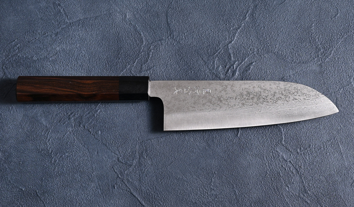 Makoto Kurosaki Santoku knife, VG7 steel, Damascus, ebony octagonal handle