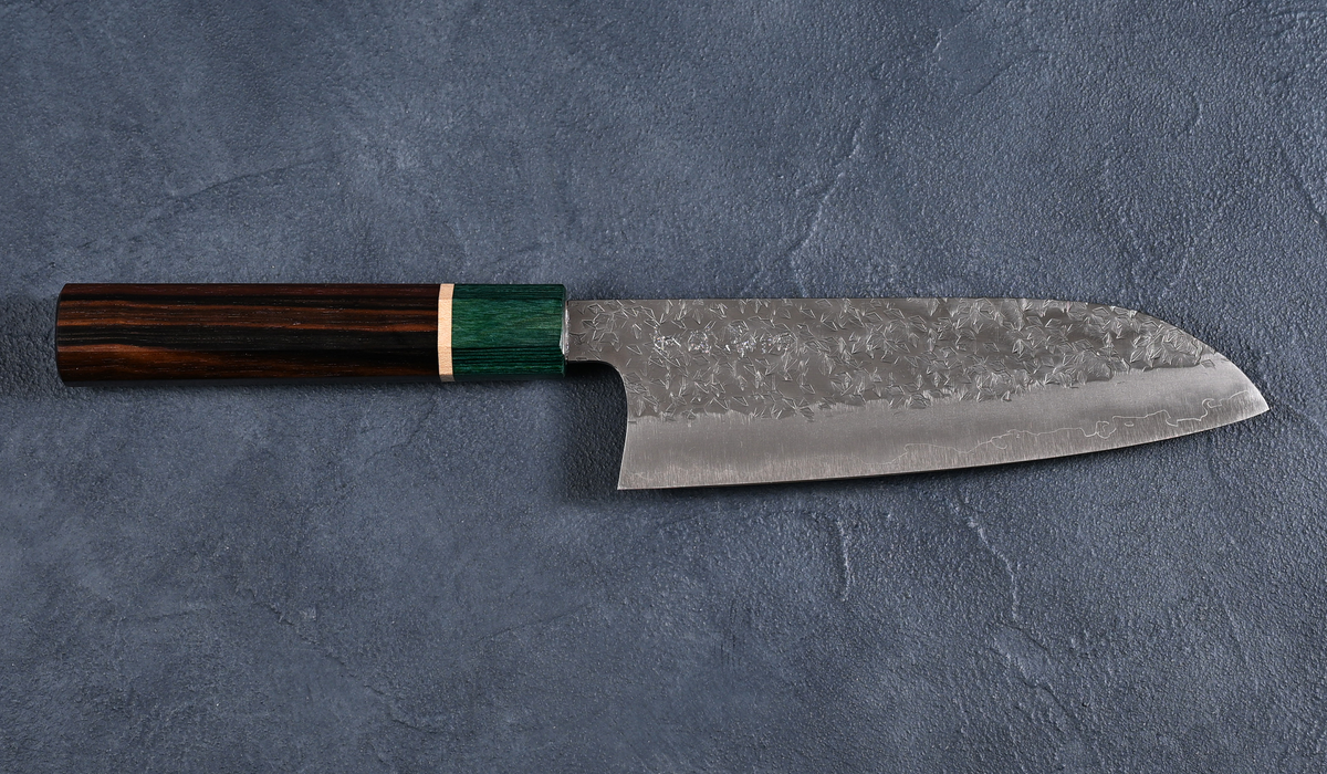 Makoto Kurosaki Samidorizuki Santoku Knife with SGSTRIX Ebony Octagonal Handle