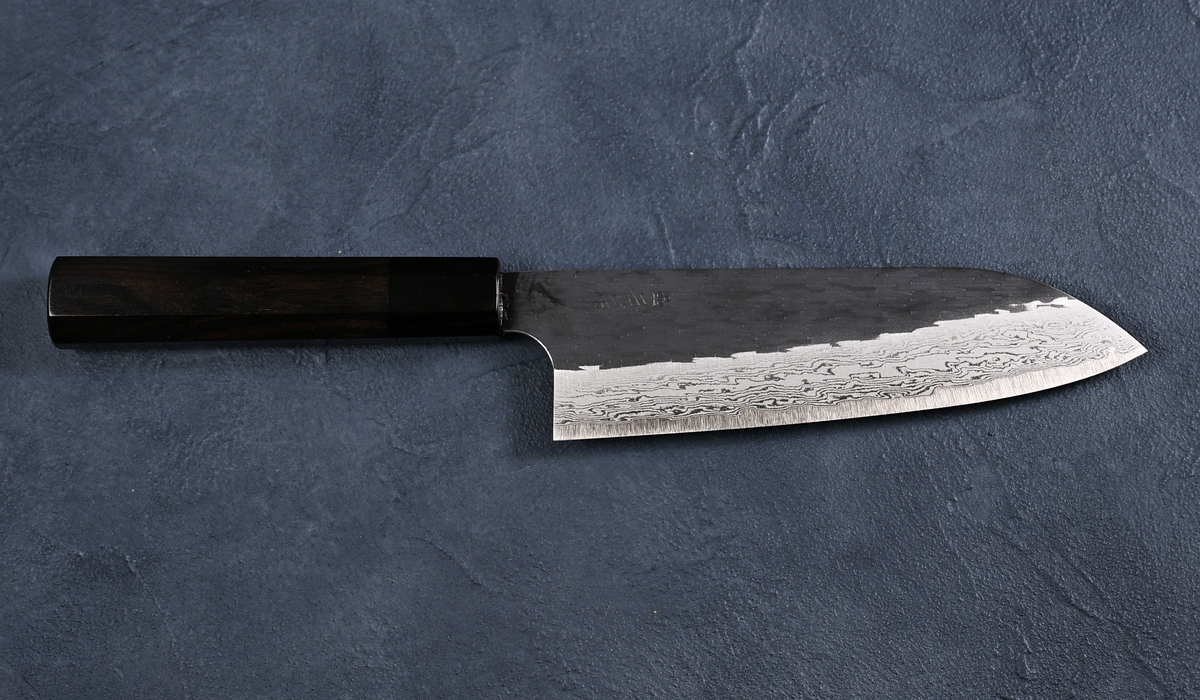 二唐 Nigara 三徳包丁 VGXEOS 黒打 水牛黒檀八角柄