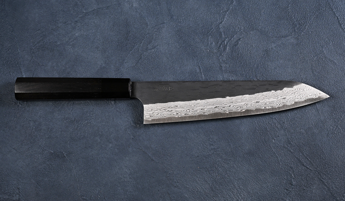 二唐 Nigara 牛刀包丁210mm VGXEOS 黒打 水牛黒檀八角柄