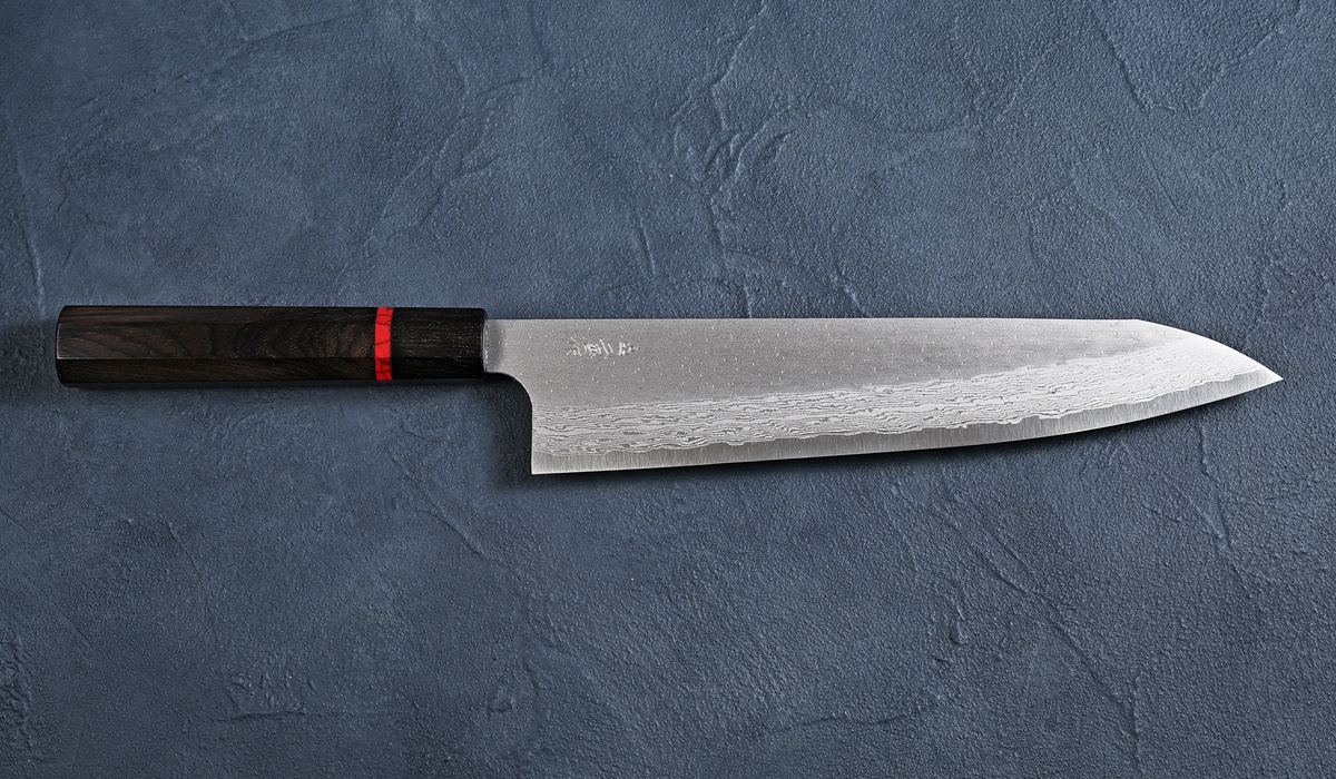二唐 Nigara 牛刀包丁240mm VGXEOS 磨き 黒檀赤リング八角柄