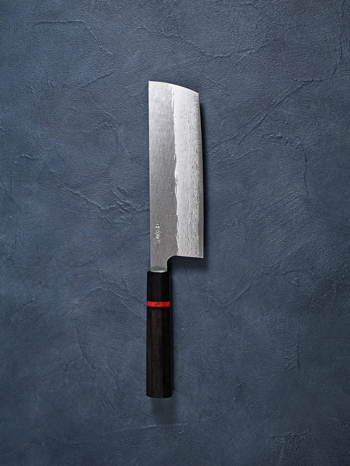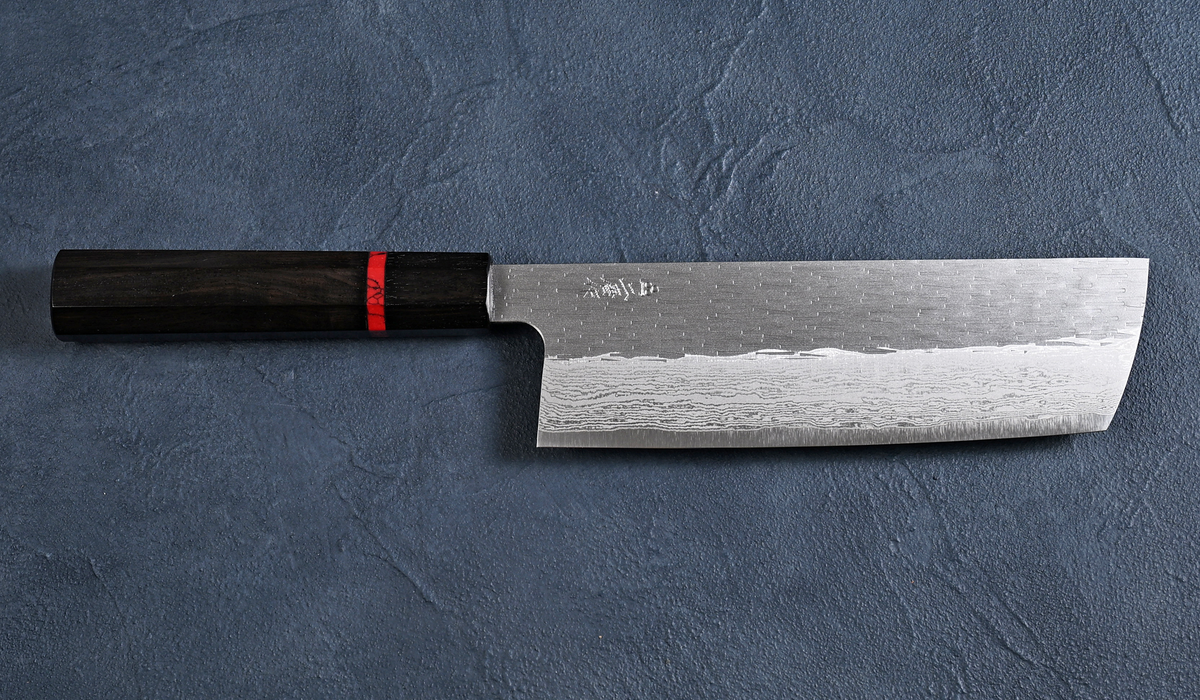 二唐 Nigara 菜切包丁 VGXEOS 磨き 黒檀赤リング八角柄