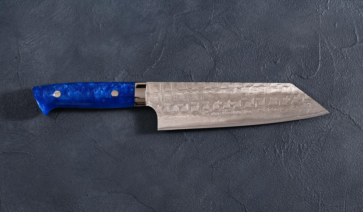 佐治武士 Takeshi Saji 文化包丁 VG10鋼 十字槌目 青アクリルハンドル