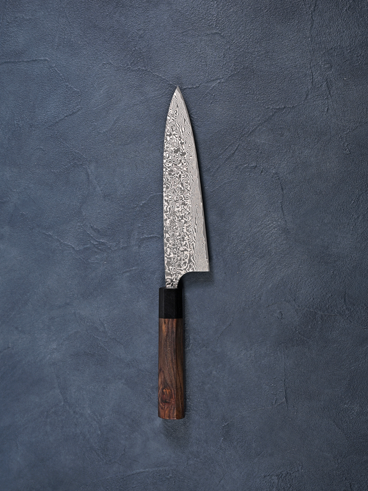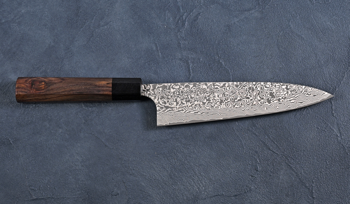 佐治武士 Takeshi Saji 牛刀包丁180mm SG2粉末ハイス鋼 ダマスカス 黒仕上 紫檀八角柄