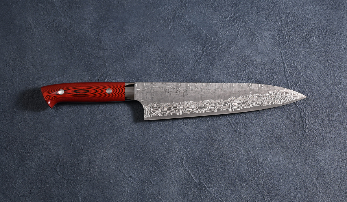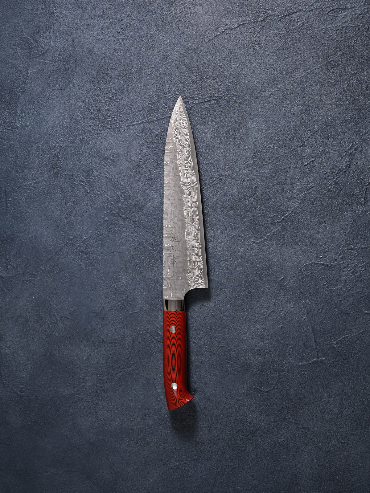 佐治武士 Takeshi Saji 牛刀包丁210mm VG10鋼 十字槌目黒仕上 赤黒マイカルタハンドル