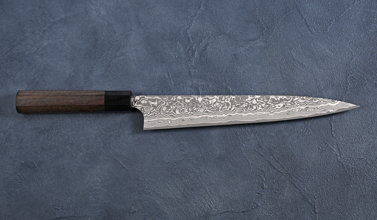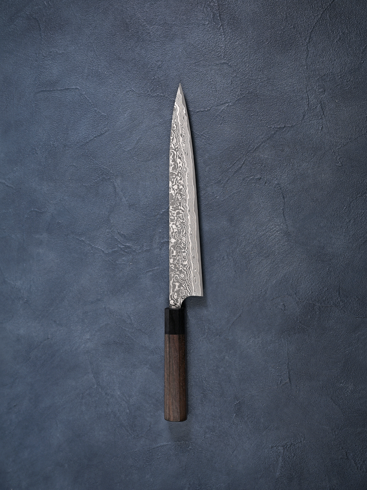 佐治武士 Takeshi Saji 筋引包丁240mm SG2粉末ハイス鋼 ダマスカス黒仕上 紫檀八角柄