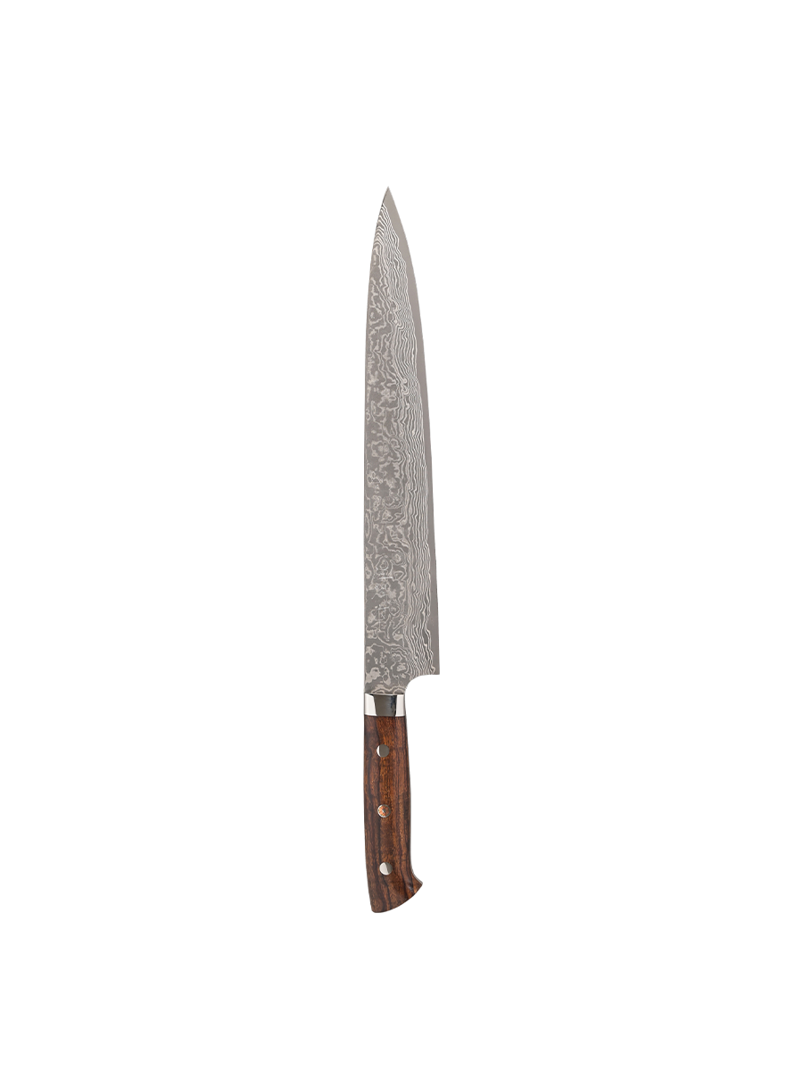 佐治武士 Takeshi Saji 筋引包丁270mm SG2粉末ハイス鋼 ダマスカス 黒仕上 アイアンウッドハンドル