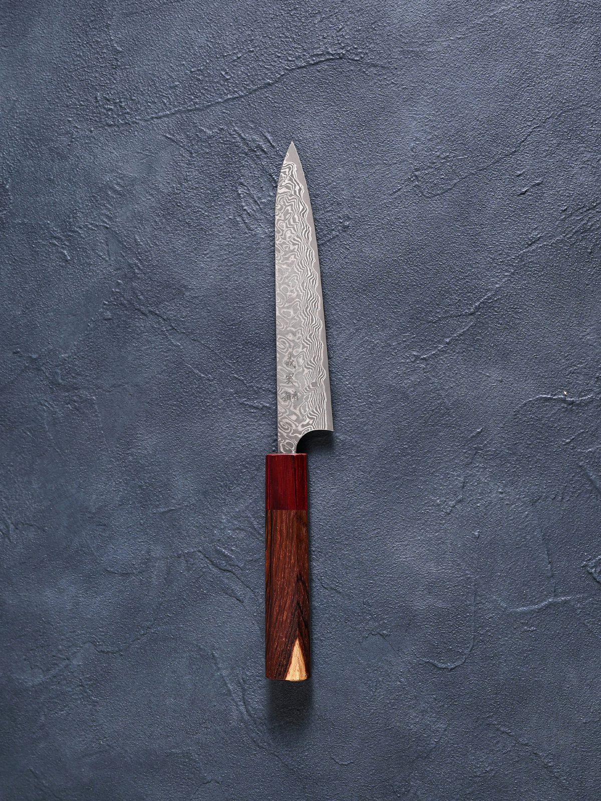 加藤義実 Yoshimi Kato ペティナイフ150mm SG2粉末ハイス鋼 ダマスカス黒仕上げ ホンジュラス八角柄