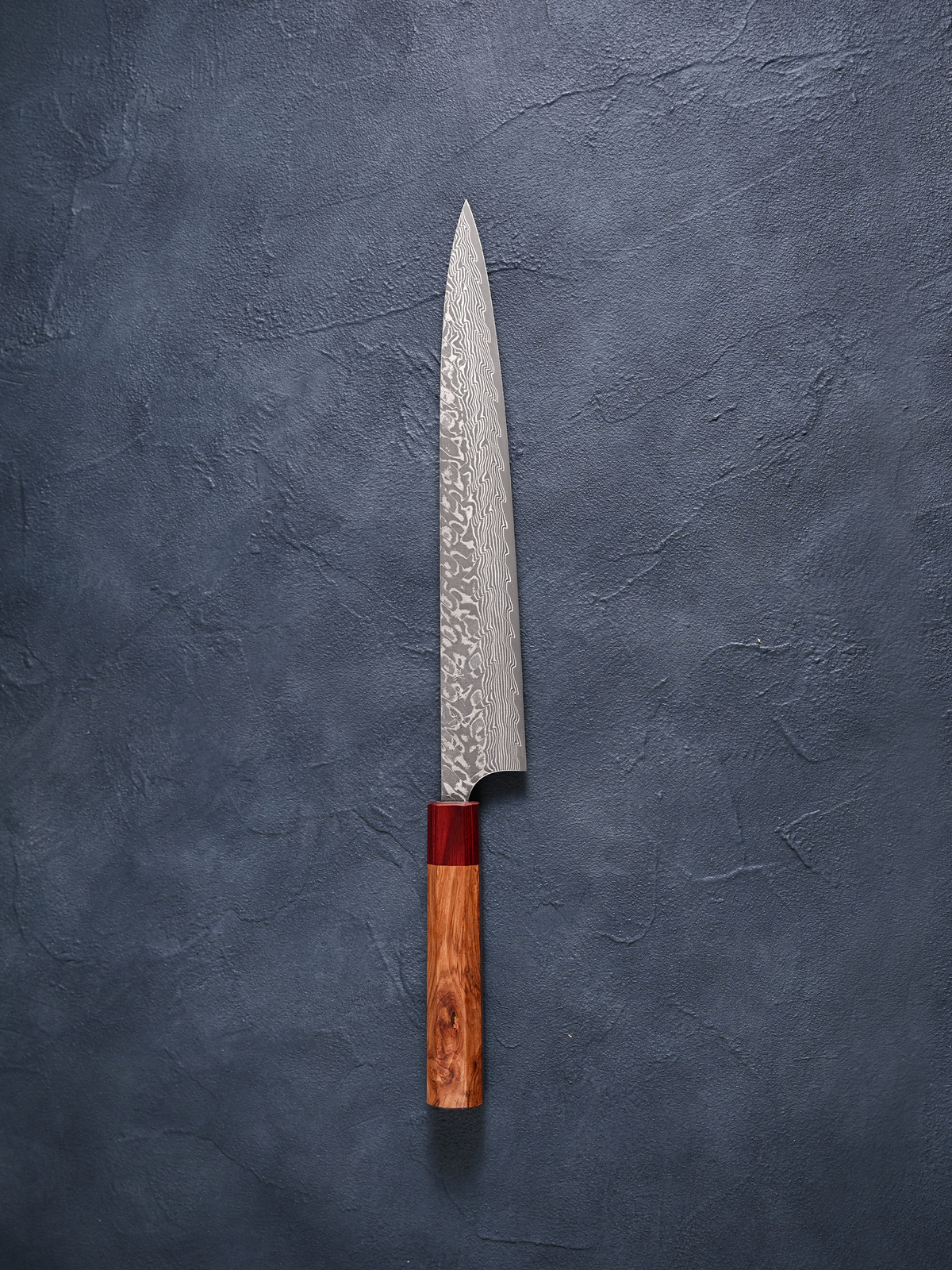 加藤義実 Yoshimi Kato 筋引包丁270mm SG2粉末ハイス鋼 ダマスカス黒仕上げ ホンジュラス八角柄
