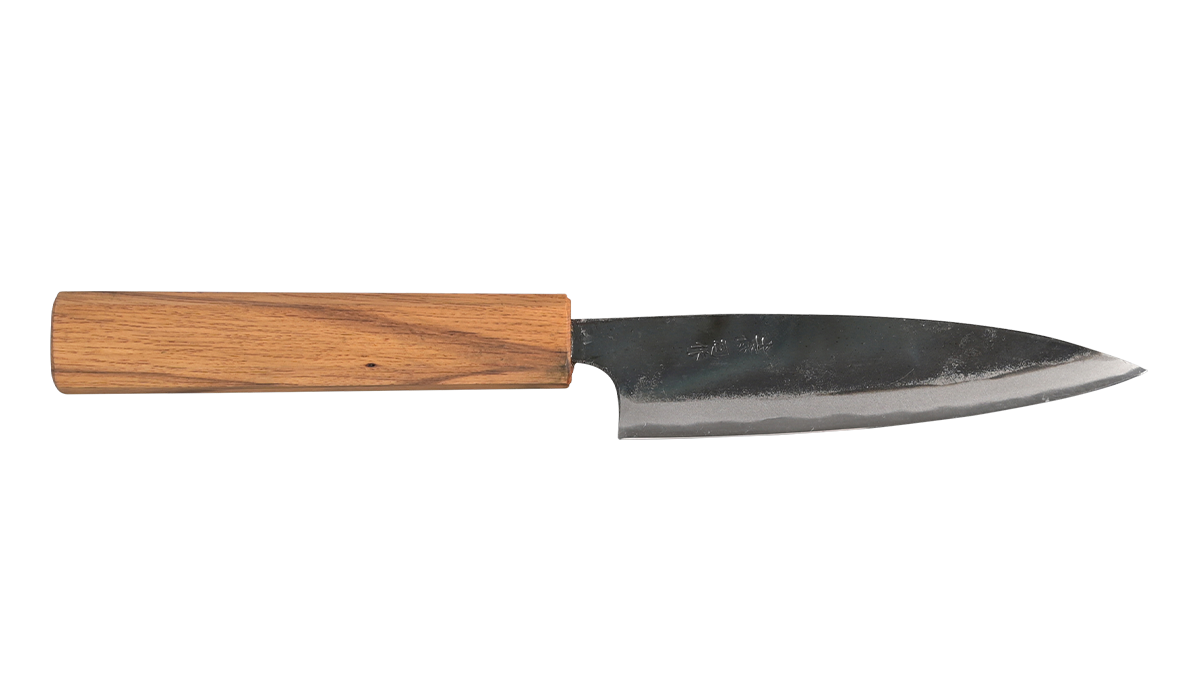 土佐司 Tosa Tsukasa 柳刃包丁120mm 両刃 白紙鋼 黒打 樫八角柄