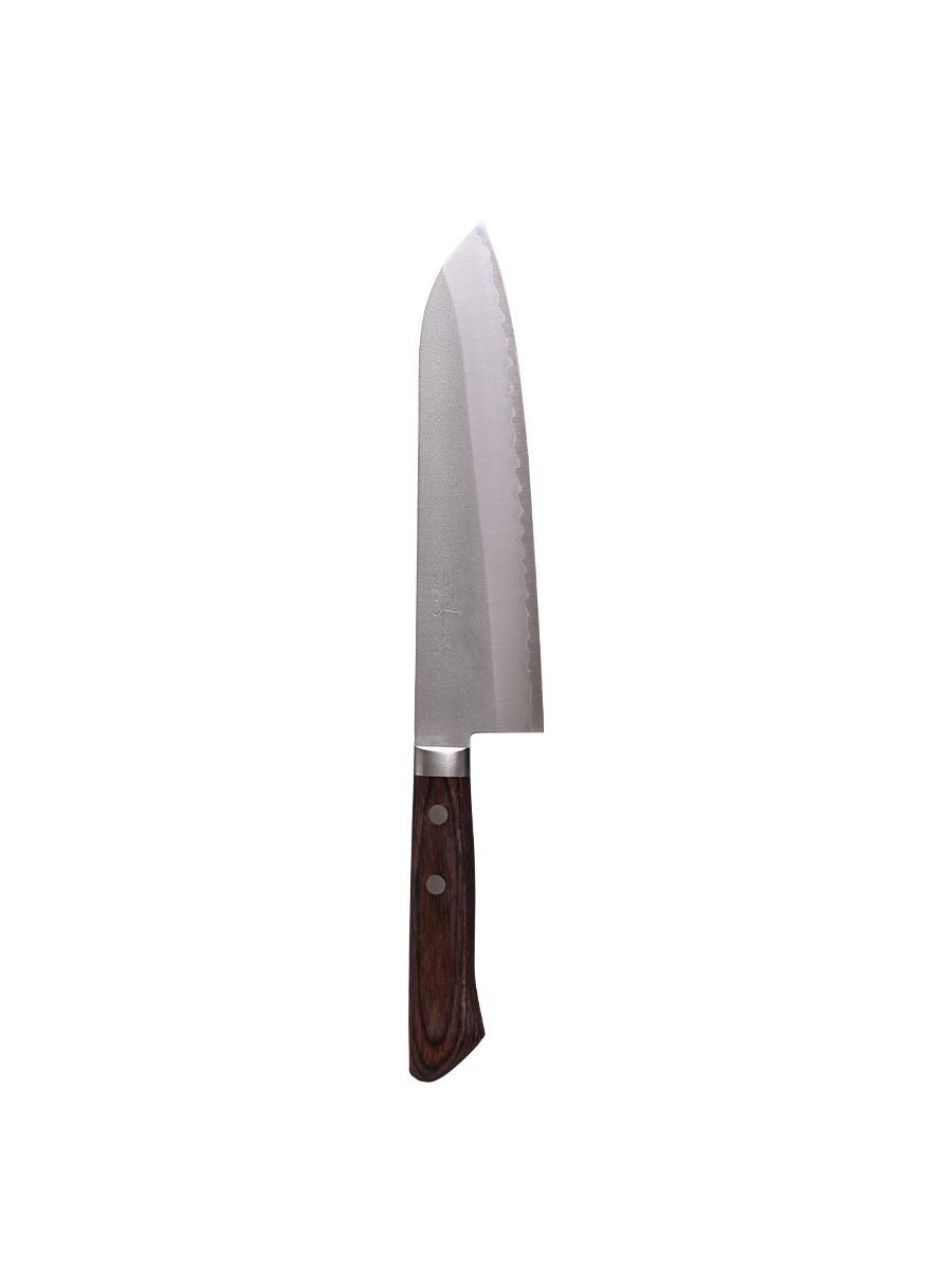 武生特殊鋼材の特殊鋼。炭素を多く含み合成成分はサブゼロの砂鉄系の高級鋼材です。研ぎやすい鋼材でありながら、職人の手で鍛え上げる事により、硬度が増し、曲がりに強く切れ味の鋭さは抜群です。研ぎやすく、錆びづらいステンレス鋼材で、ご自身で研いで使われる方などに最適の扱いやすい包丁となっております。