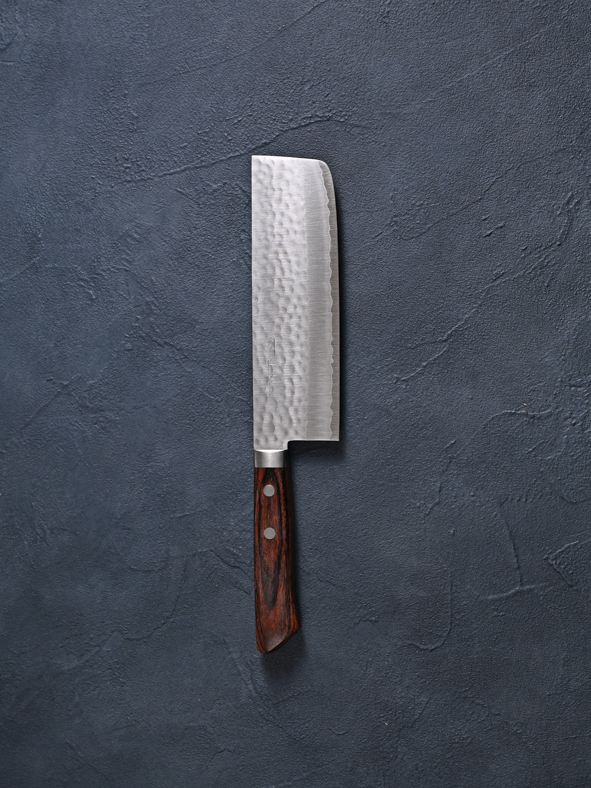 増谷刃物 Masutanihamono 菜切包丁 VG1鋼 槌目 茶洋柄