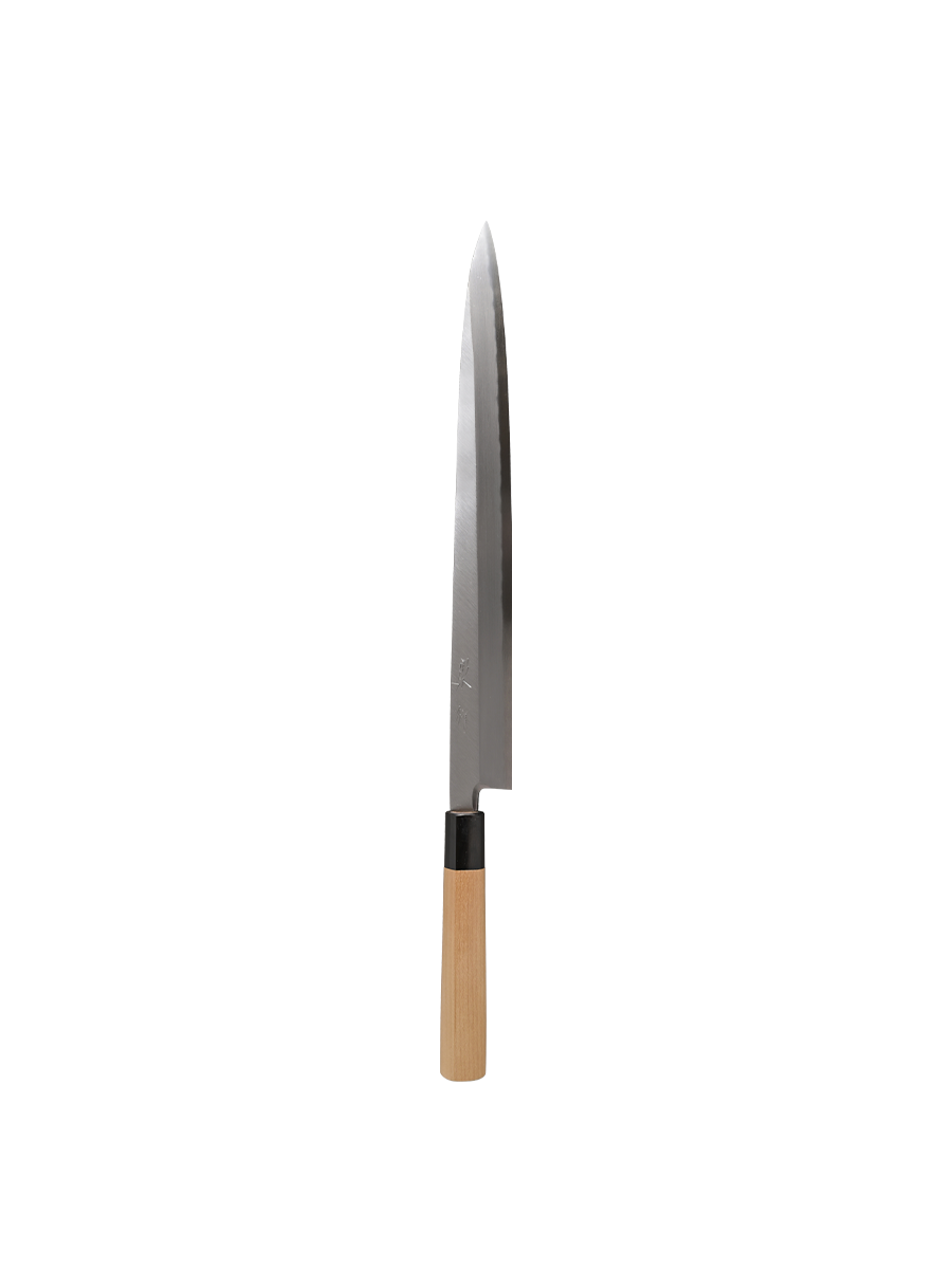 食材を引いて切る”削ぎ切り”に適している包丁です。お造りはもちろんたたきのスライスや ハム、ローストビーフなどの薄切りにも大変便利です。