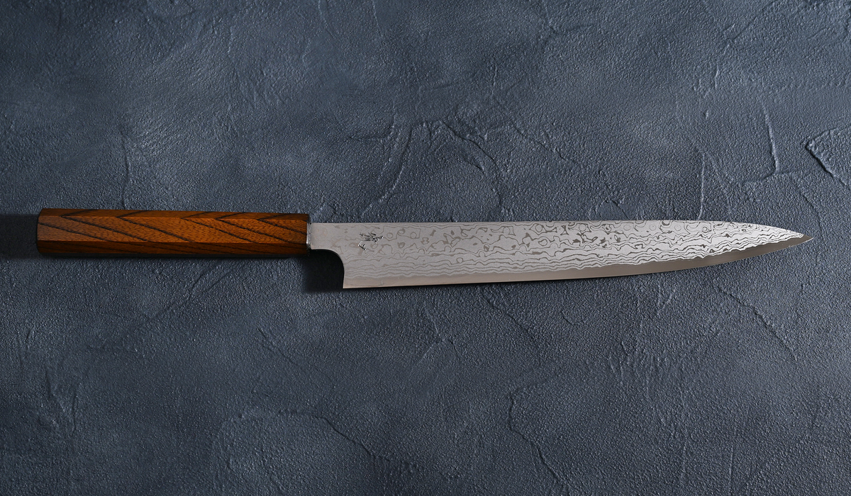 弥氏良寛 Yoshihiro Yauji 柳刃包丁270mm 青紙2号鋼 ダマスカス 欅八角柄