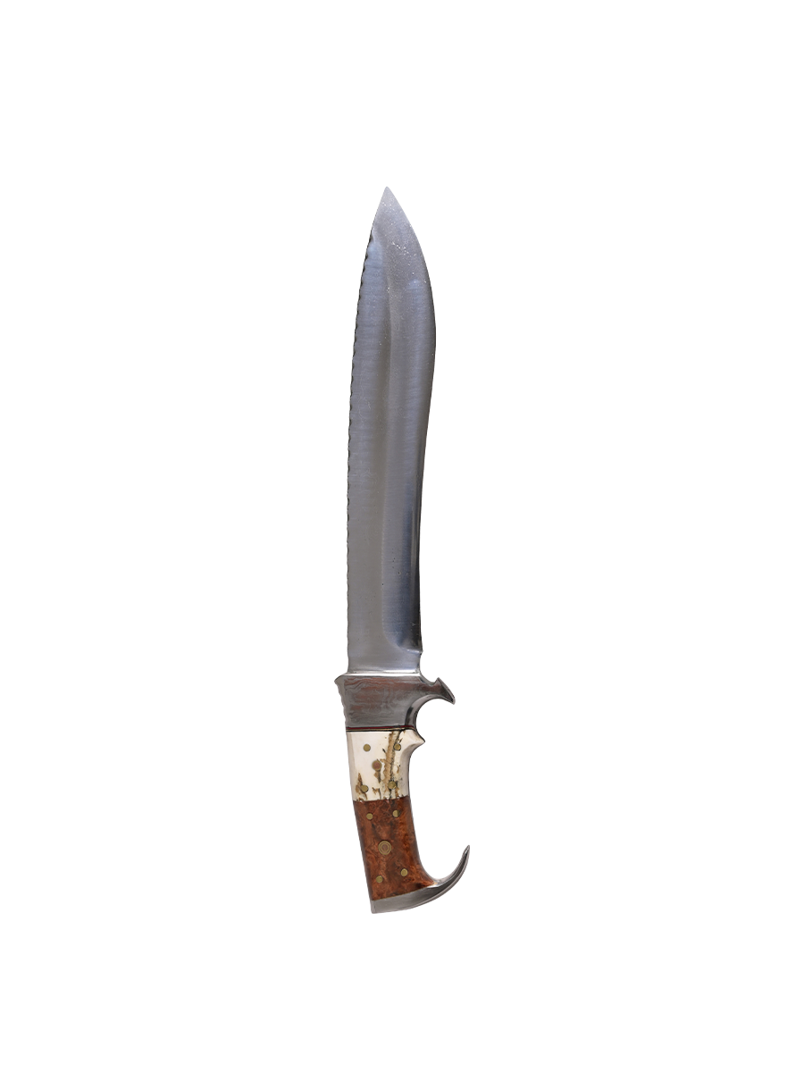 ブレイド、柄、鞘まで全て手造りしてあり、1本1本に影浦氏の丹精が込められたナイフです。 芸術品としても道具としても素晴らしく、影浦氏にしか造ることができない貴重な1本です。