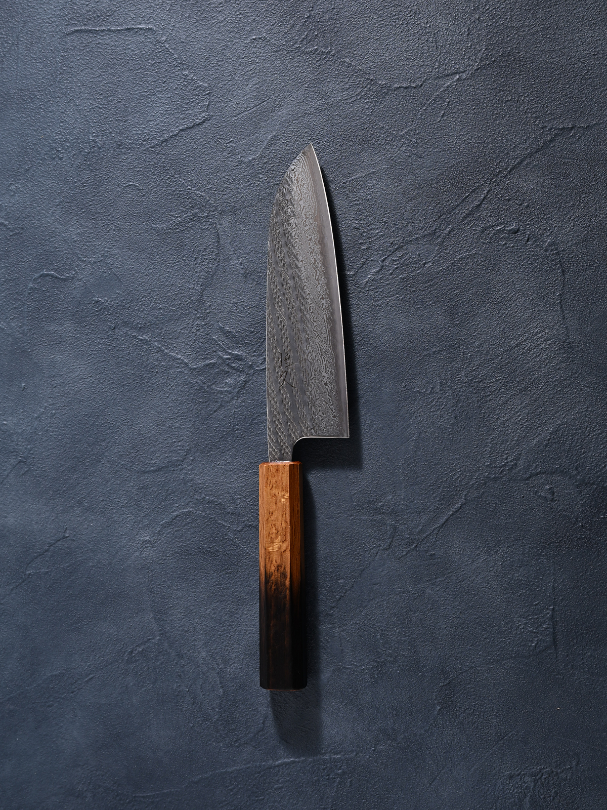 恒久 Tsunehisa 三徳包丁 AUS10鋼 縄目 ダマスカス 樫焼漆八角柄