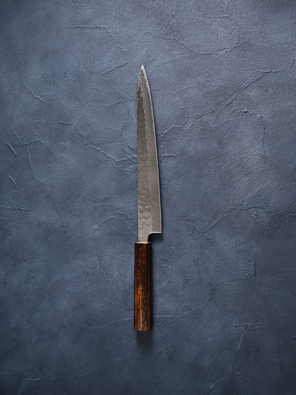 恒久 Tsunehisa 筋引包丁240mm 440C鋼 ダマスカス 槌目 バイコク樫八角柄