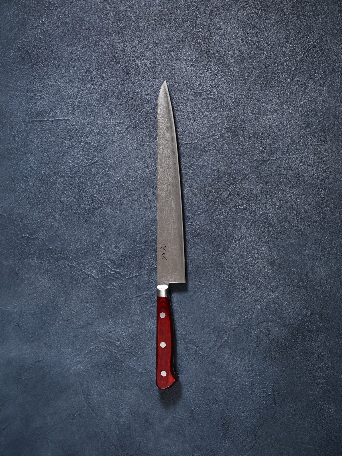 恒久 Tsunehisa 筋引包丁240mm AUS10鋼 ダマスカス 波 赤洋柄