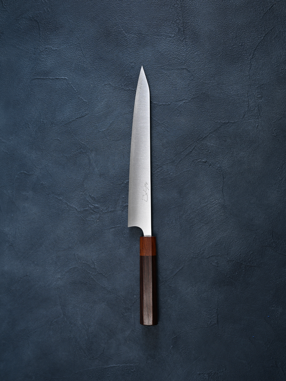 甲鉄 Koutetsu 筋引包丁240mm 青紙スーパー鋼 紫檀八角柄 ※B品
