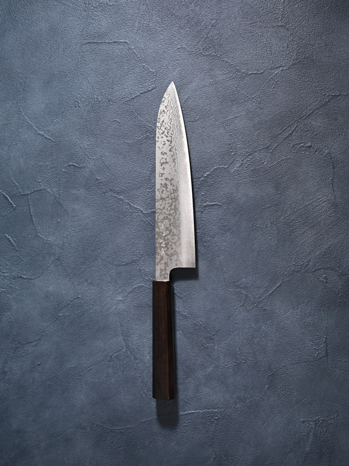 黒﨑真 Makoto Kurosaki 牛刀包丁210mm VG7鋼 ダマスカス 口輪なし黒檀八角柄