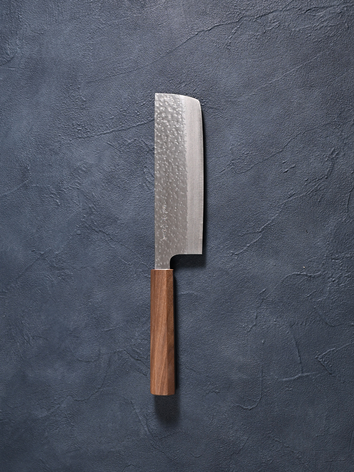 黒﨑真 Makoto Kurosaki 菜切包丁 VG7鋼 槌目 ダマスカス ウォルナット八角柄